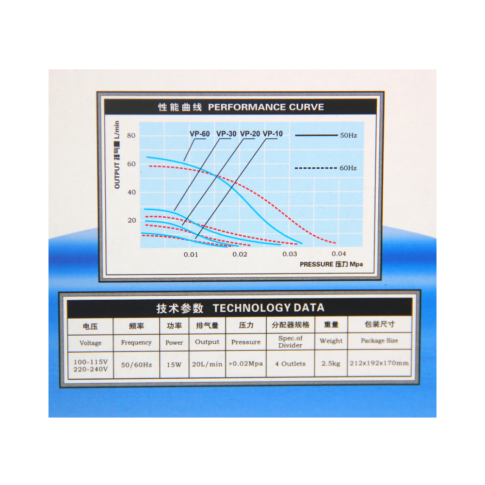 -Model VP-20, 20 liters / min., 15 Watt, pressure> 0.02MPa.