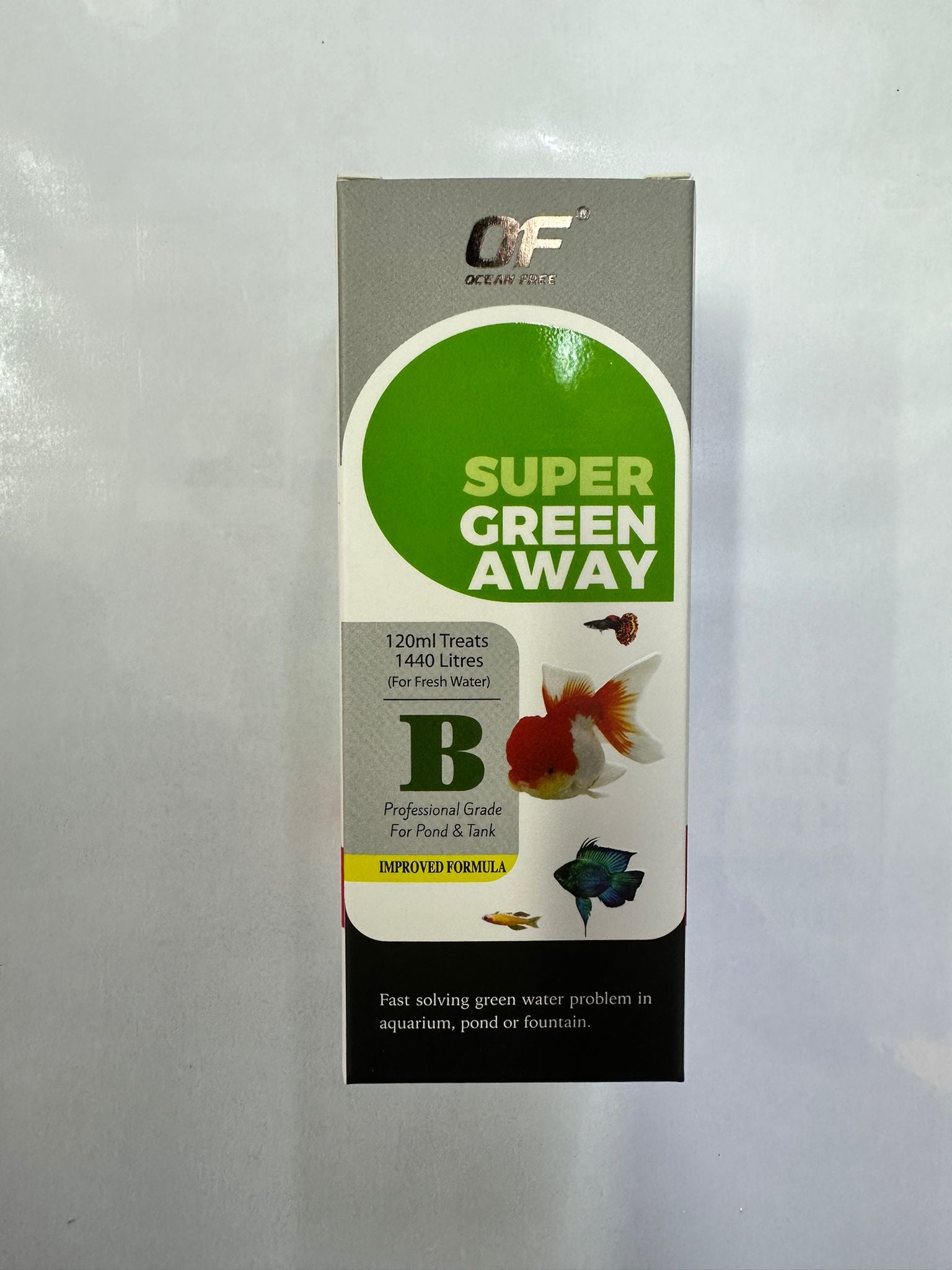 Fast solving green water problem in aquarium, pond or fountain Remove green suspended particles by clumping them together Does not colour the aquarium water Harmless to all fishes, filter bacteria and plants 120 ml treats 1440 liters For freshwater use