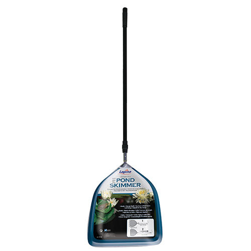 The Laguna Pro Pond Skimmer is a heavy-duty net featuring a rigid, extendable shaft and soft, fish-friendly netting.
