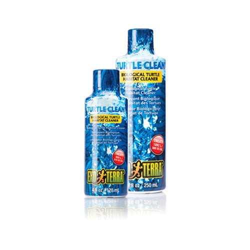 Cleans Turtle Aquatic Habitats and Gravel Reduces and Controls Odors Rapidly Reduces Organic Waste 100% BIOLOGICAL Exo Terra Turtle Clean is a 100% biological turtle habitat cleaner that when used on a weekly basis helps control odors and break down solid organic waste.