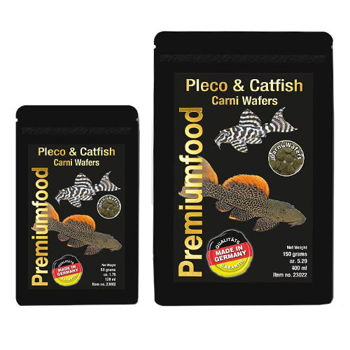 Carni Wafers are a natural nutrition for all carnivorous catfishes. They contain everything that Hypncistrus, Pseudacanthicus, Scobiancistrus and many other L-cats consume in their natural habitat. The main component is a bacterial protein that is similar to the natural growth of the substrate. Crustaceans and 10% insects complement the complete diet for carnivorous L-catfish. The composition corresponds approximately to the natural feeding of these fish. Carni waffles are not pressed food as tablets but extruded. The raw material is fed into this mold under high pressure. Valuable folders are preserved. Carni Wafers are falling to the ground.
