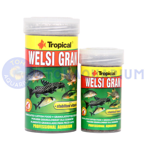 WELSI GRAN multi-ingredient sinking granules for bottom feeding fish.