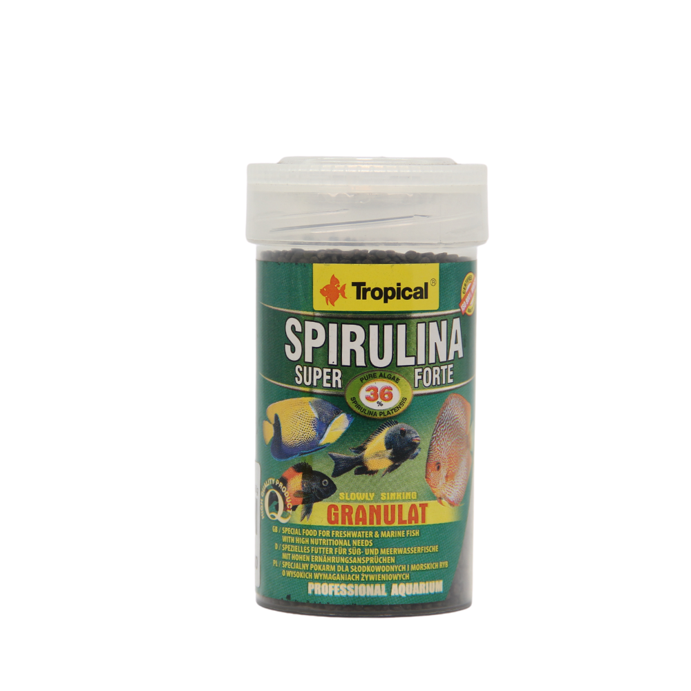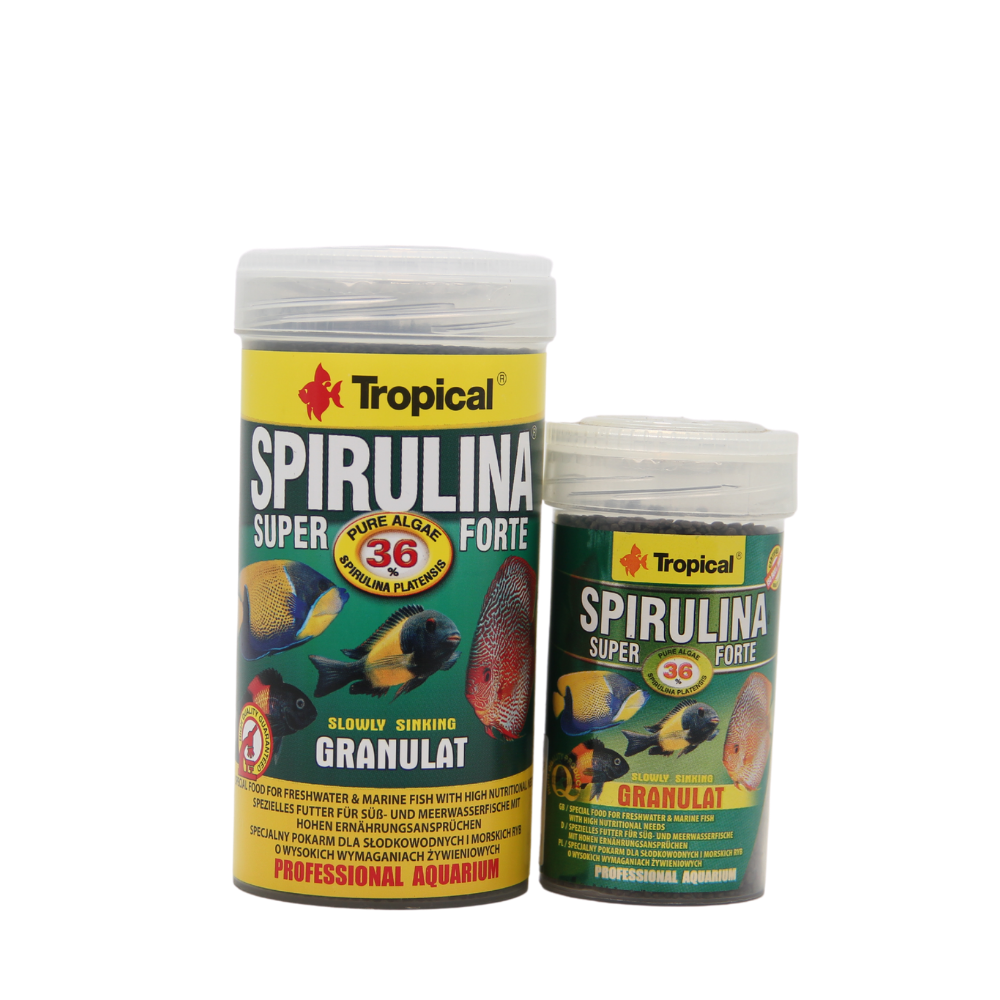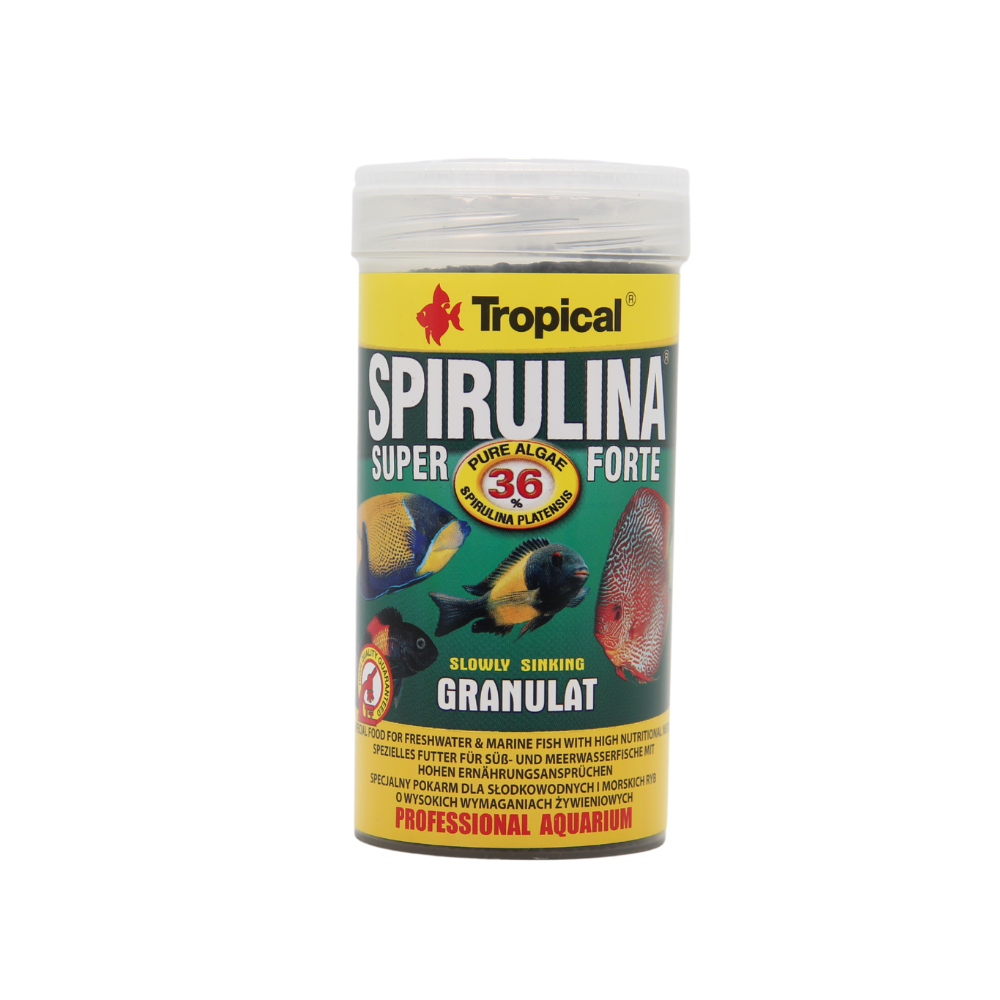 SUPER SPIRULINA FORTE GRANULAT vegetable, sinking granules with high content of spirulina (36%). Vegetable food in the form of sinking granules with high (36%) content of spirulina.