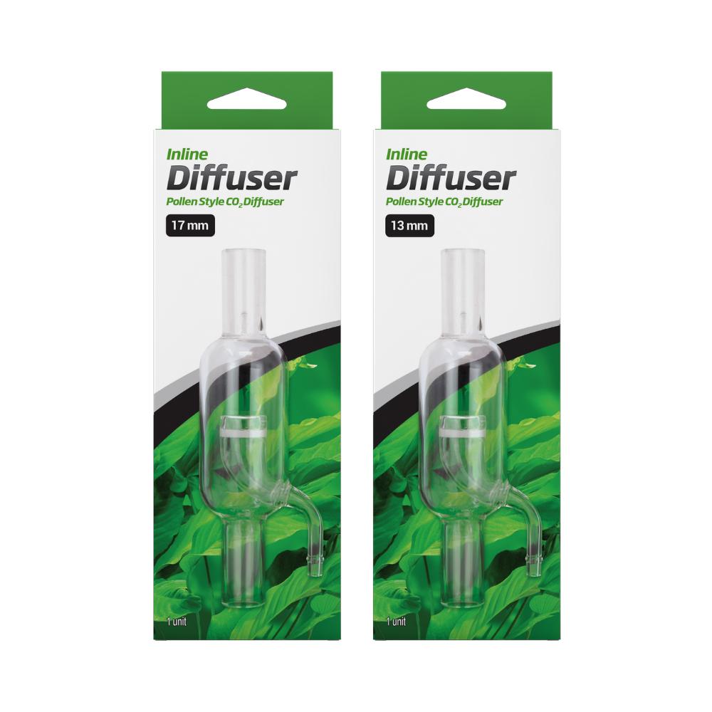 The 17 mm glass Inline Diffuser is a pollen style inline CO2 diffuser that is placed in the outflow line of the filter or aquarium pump to efficiently diffuse CO2 gas into the aquarium. This placement of the diffuser avoids the need for a diffuser in the aquarium and significantly reduces the visibility of the CO2 injection system in the aquascape. This also allows for more rapid diffusion of CO2 into the system and can allow for more consistent levels and reduce waste of CO2 or overdose of CO2