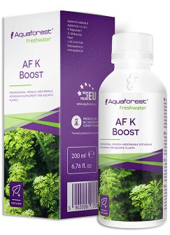 Potassium concentration in the aquarium should be 10-20 mg/l. AF K Boost fully replenishes deficiencies of potassium, needed for aquatic plants.