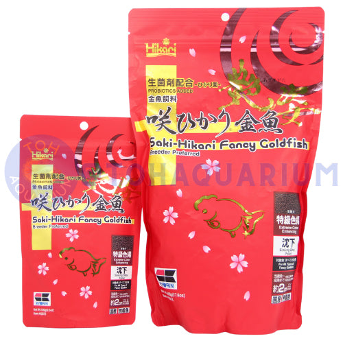 1) Our unique combination of carefully selected color enhancing ingredients including; Spirulina, Marigold, Astaxanthin and Phaffia Dried Yeast offers extreme color enhancing capacity. More rapid coloration with deeper hues can be expected when compared to lower quality color enhancing foods. The Hikari-Germ™ promotes more rapid digestion thereby reducing waste output while working to decompose it and thereby improving overall water quality, filter effectiveness and can reduce regularly scheduled maintenance. Higher levels of Vitamin E and Vitamin C offer immune system support. Research at the Hikari® Aquatic Lab confirmed daily feeding comprised of only 25% Saki-Hikari® Fancy Goldfish Extreme Color Enhancing offered superior color development compared to other foods. Feeding :Feed 2 to 4 times daily, the amount your fish will consume within a few minutes. Care should be taken to avoid over-feeding. Saki-Hikari Fancy Goldfish Extreme Color Enhancing Diet will provide maximum results when your water temperature is consistently above 18 degree. Always remove any uneaten food after the feeding period to avoid water quality issues.
