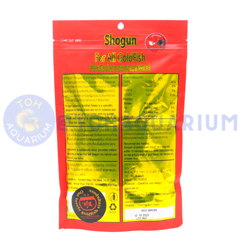 1. Shogun Advance Goldfish Pellets is specially designed for fishes which are rich in nutrients and vitamins that will promote better immune system, growth and coloration in our lovely fishes.