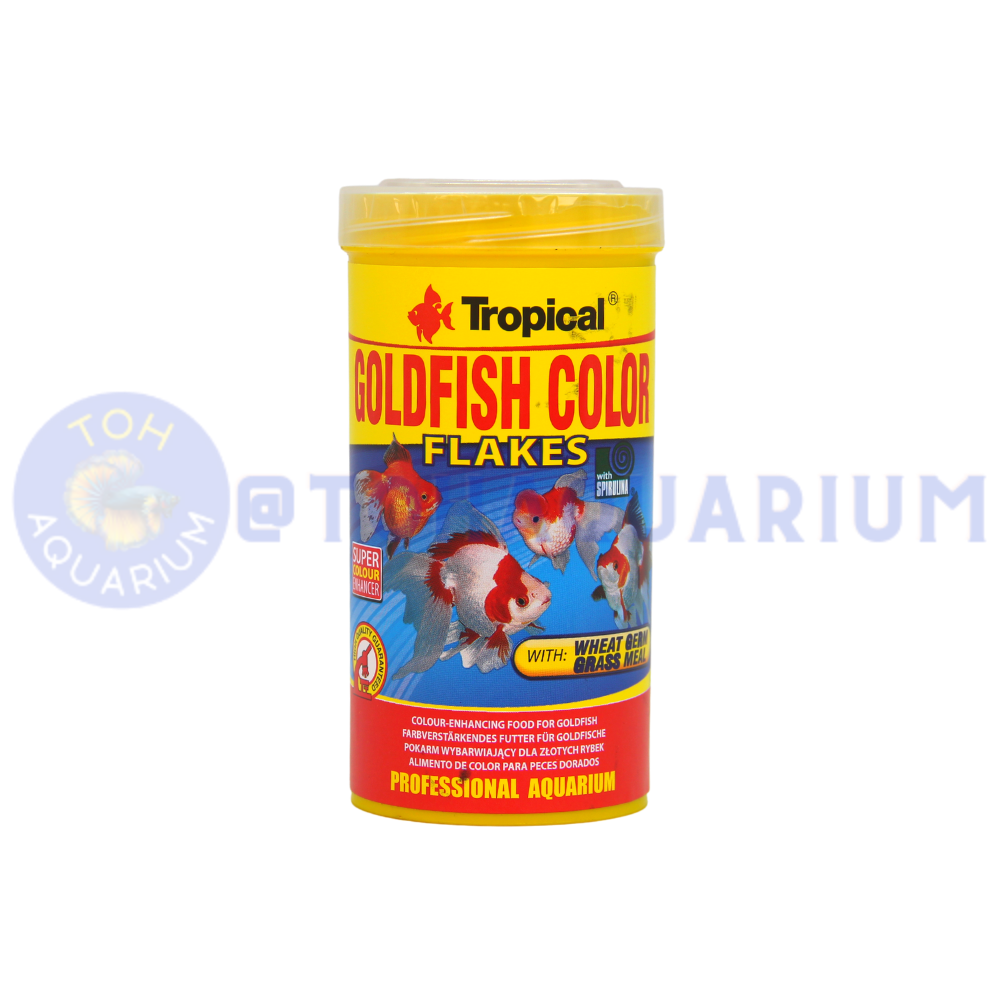 GOLDFISH COLOR colour-enhancing food for goldfish. GOLDFISH COLOR is a colour-enhancing food in the form of flakes for all species of goldfish and young koi, kept both in tanks and ponds. An exceptionally rich formula of GOLDFISH COLOR has been developed to match sophisticated dietary needs of cyprinids and ensure their excellent condition. A high share of fibre, from grass mixture among other sources, facilitates proper functioning of a long alimentary tract of this group of fish while L-carnitine regulates fat metabolism, ensuring fat’s optimal utilisation. Wheat germs are the source of valuable unsaturated fatty acids and concentrated dosage of vitamins and trace elements. Due to the addition of astaxanthin, regular feeding intensifies coloration.