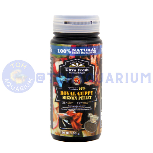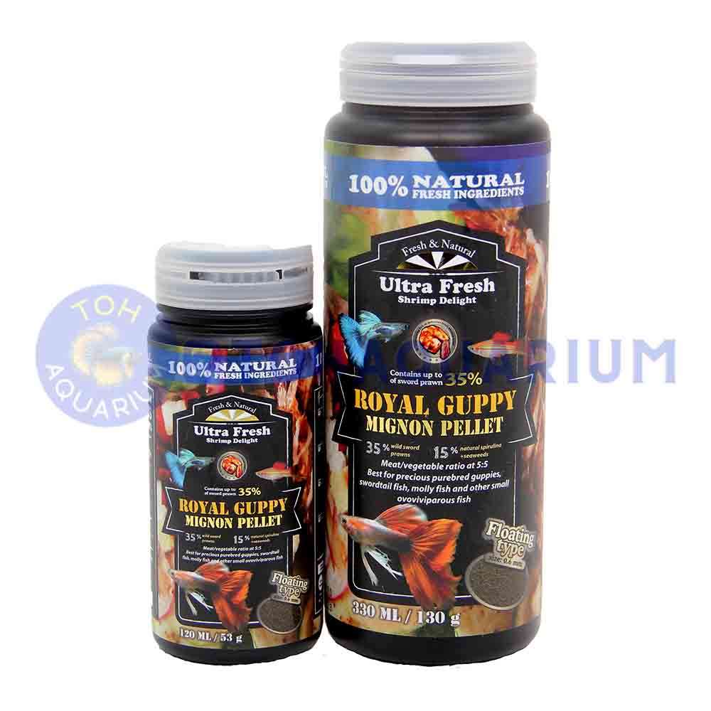 Formulated with high content of wild sword prawns (up to 35%), garlic, Norwegian seaweed, Australian spirulina, plus a blend of carefully selected natural ingredients, this iodine-rich fish feed features high palatability and nutritional value for ovoviviparous fish such as guppies.