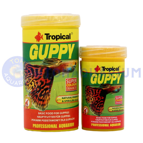 GUPPY is a multi-ingredient food in the form of flakes, intended for everyday feeding of guppies, mollies, platies and other live bearing fish.