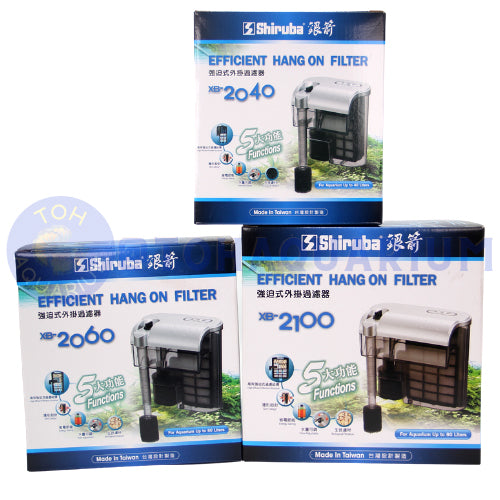 XB2040 - For use in 40 L or less aquariums. Max water flow 360 L/Hr. Efficient fitration design. Special design leading water to go through cartridge nearly completely. Adjustable water flow switch. No need to add water after restart. High quality plastic material. Designed and made in Taiwan