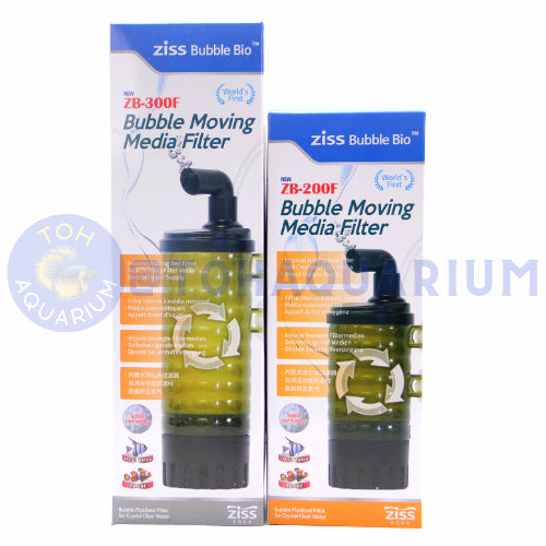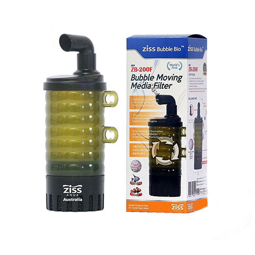 ZBF-200 : Easy to use. Each filter will treat a system up to 200 litres. 3-watt air pump is sufficient to run each filter (not included). Media: 200ml of ZM-II included. New upgraded Ziss moving media (ZM-II) included. Excellent Biofiltration by direct oxygen supply. Stable filtration by self-cleaning filter media. Physical filtration by contained filter sponge. Made from High-quality material
