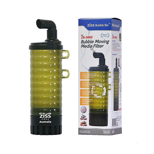 ZBF-300 : Easy to use. Each filter will treat a system up to 300 litres. 3-watt air pump is sufficient to run each filter (not included). Media: 300ml of ZM-II included. New upgraded Ziss moving media (ZM-II) included. Excellent Biofiltration by direct oxygen supply. Stable filtration by self-cleaning filter media. Physical filtration by contained filter sponge. Made from High-quality material. Made in Korea Size: Height: 26 cm x Diameter 7.5 cm Filter Volume : 600ml