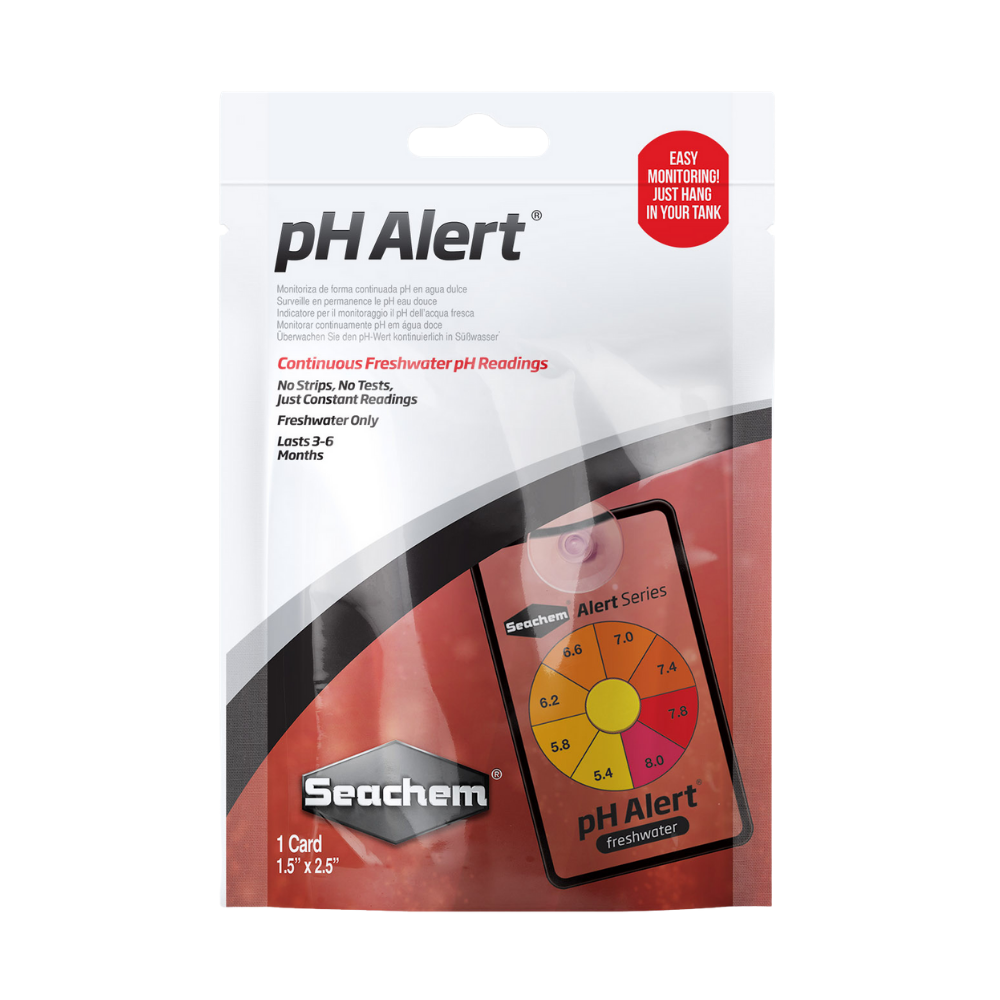 pH Alert® is a unique color device designed to be placed in the aquarium or filter and monitor pH continuously. A sensor changes color reversibly from yellow to orange to red alerting you to shifts in pH levels between 5.4 and 8.0. Freshwater use only.