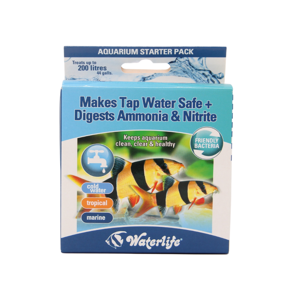 Aquarium Starter Pack Makes tap water safe Digests ammonia & nitrite Starts new filters Waterlife’s new Starter pack is ideal for smaller aquarium set-ups or maintaining an existing tank.