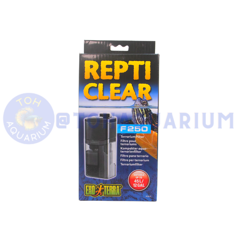 The Repti Clear Terrarium Filter is an optimal water filtration system with large filter volume and effective flow control. Three filter cartridges guarantee optimal mechanical, chemical and biological filtration. The 3-stage filtration system allows alternate replacement for continuous biological filter activity. The Repti Clear Terrarium Filter offers an airflow control device and water flow adjuster. The filter is supplied with two spouts: a 90° degree swivel spout that directs flow output and allows changes to the flow pattern in the aquarium or terrarium, and a 180° spout to connect tubing.