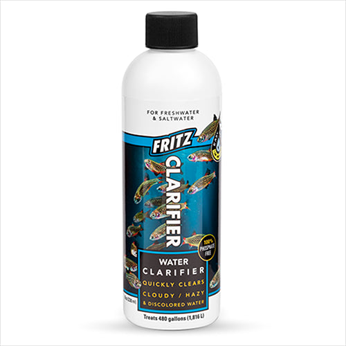 Quickly clears cloudy water Clumps together suspended particles that affect clarity Improves filter efficiency For fresh and saltwater systems, plant and reef safe Phosphate-free Made in the USA About Fritz Clarifier Cloudy, discolored water is caused by overfeeding, biological blooms, gravel dust and other suspended particles that are too fine to be removed by mechanical filtration and stay in the water column.
