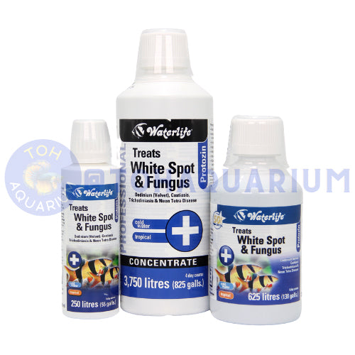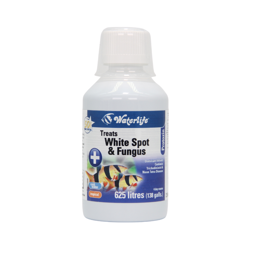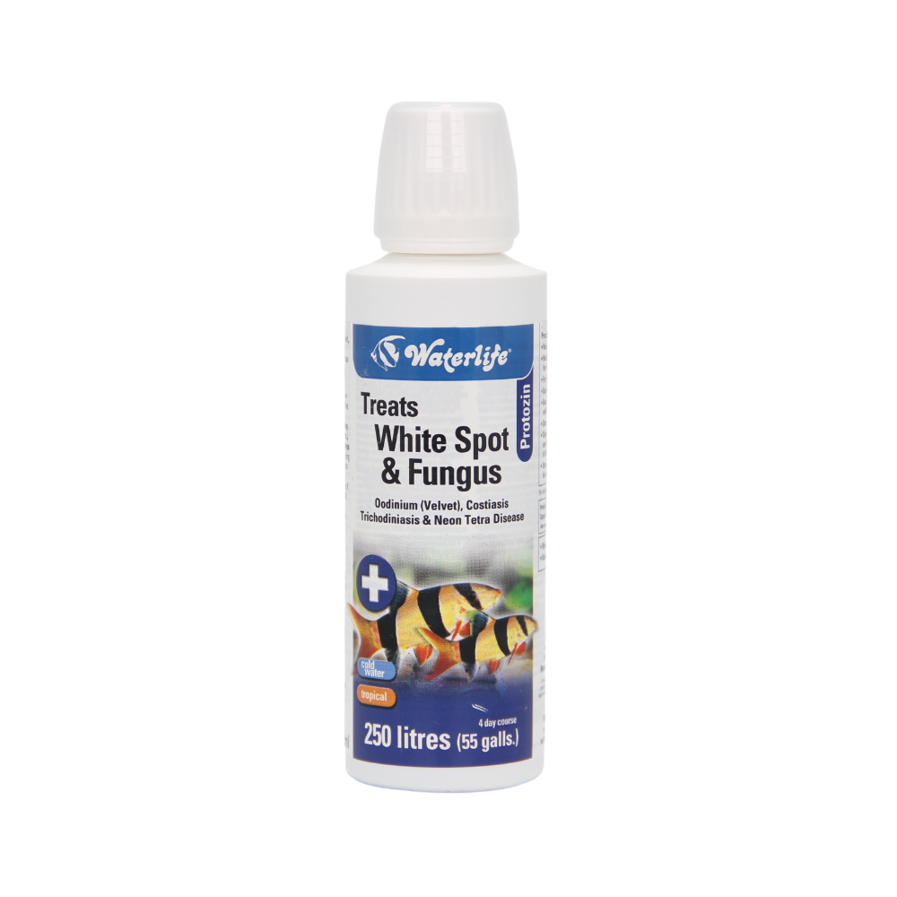 Waterlife Protozin is a 7 Day treatment for whitespot (ich), Oodiniasis (velvet), Costiasis, Trichodiniasis, Neon Tetra Disease and Fungus.