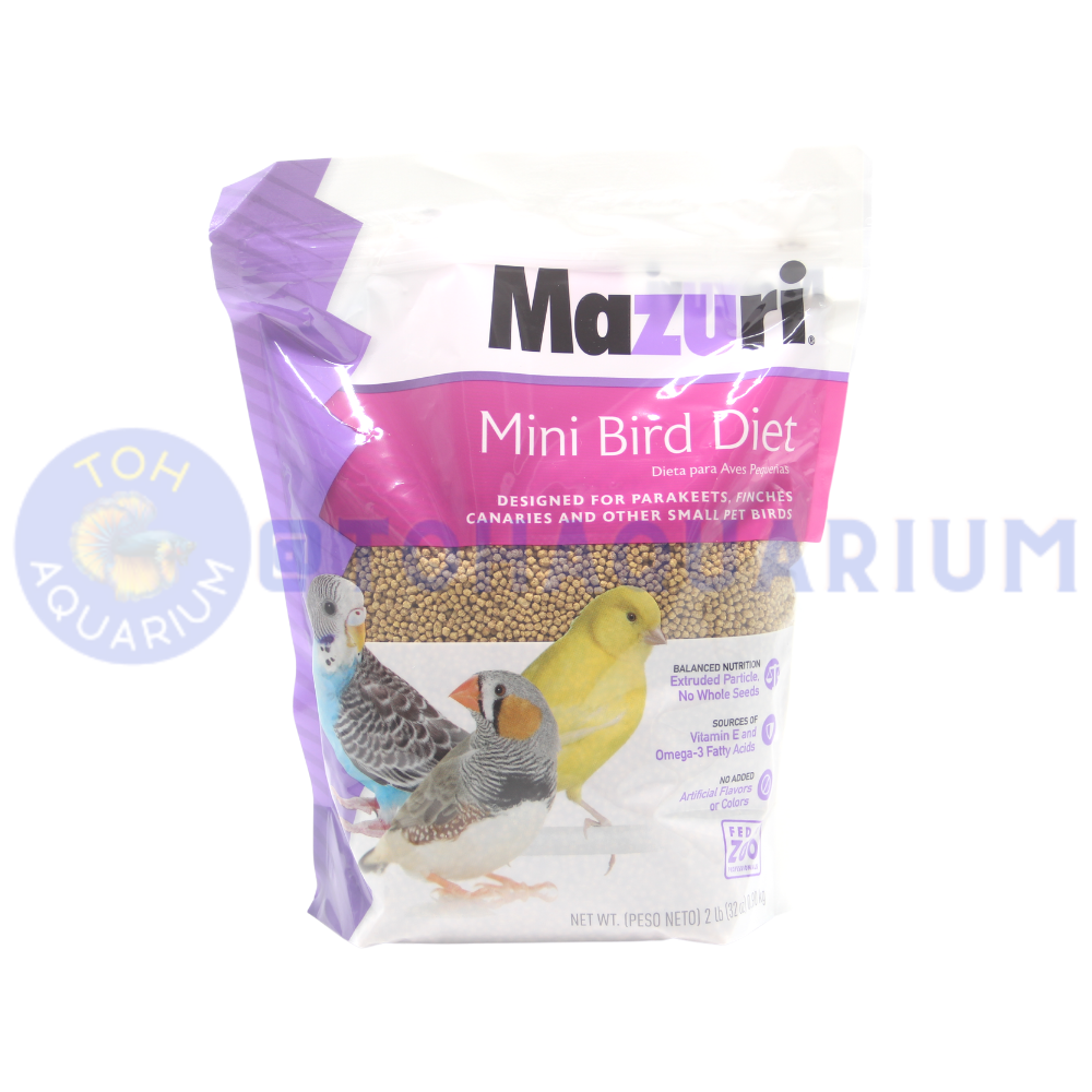 Mazuri® Mini Bird Diet is a complete bird food developed to support the optimal nutrition of parakeets, finches, canaries and other small pet birds. This nutritionally complete small bird food is specially formulated for non-breeding birds (young birds after first molt and up to breeding age, and for birds kept in non-breeding situations). This diet is not for growing chicks.