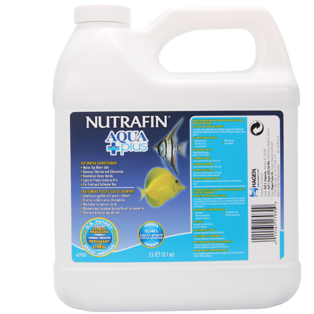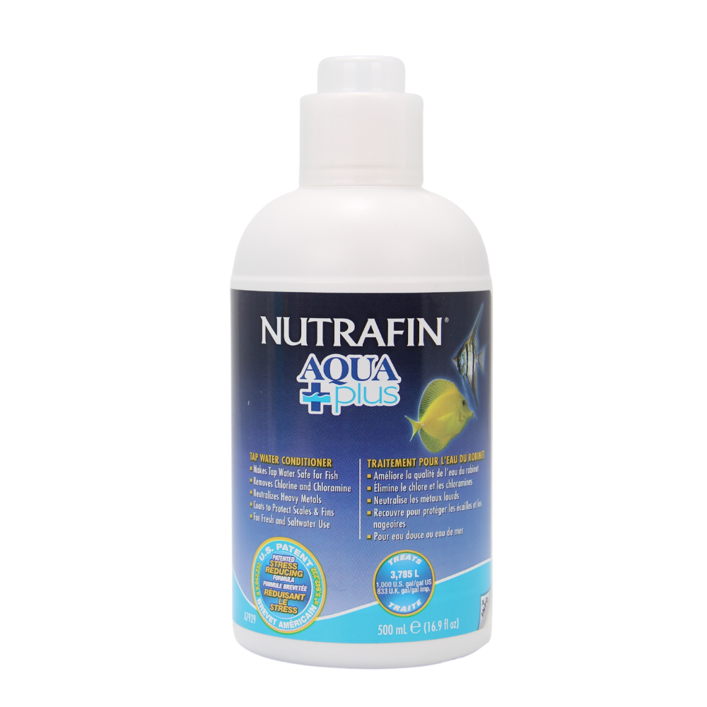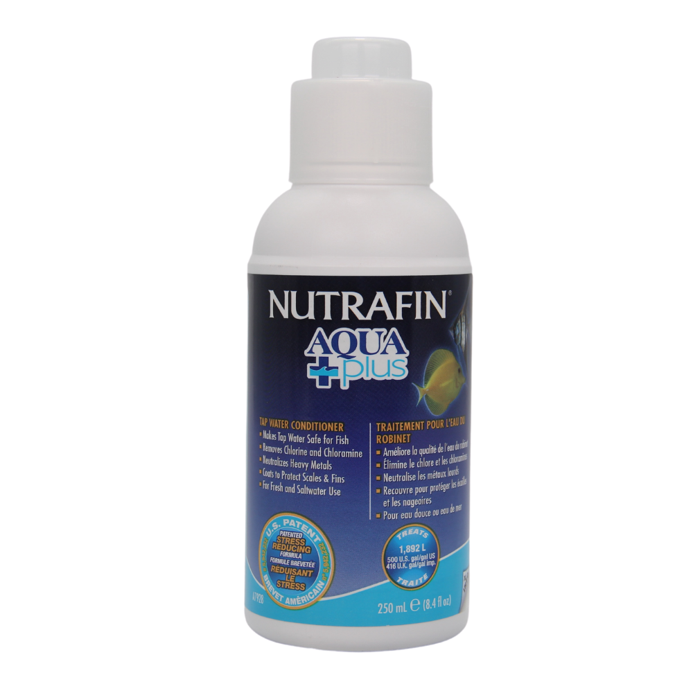 Nutrafin AquaPlus Water Conditioner makes tap water safe by neutralizing chlorine, chloramine and undesirable metals, which are toxic to fish. Formulated with pure herbal extracts, it also reduces fish stress and protects scales and fins from minor scrapes and cuts.